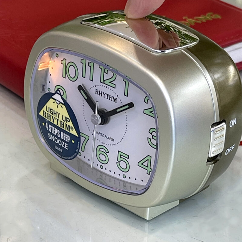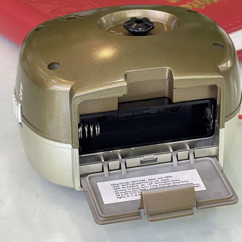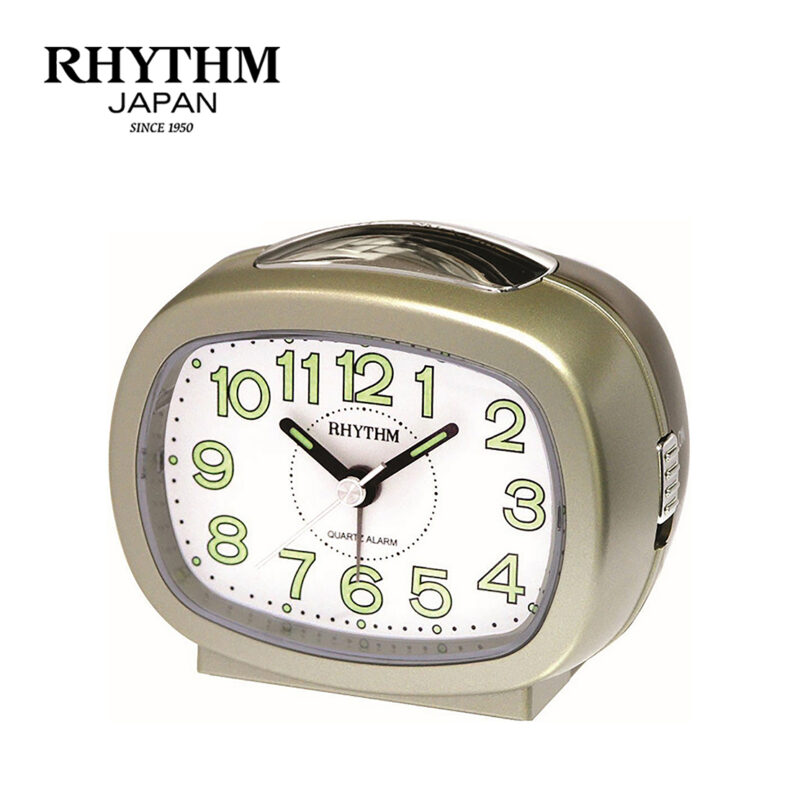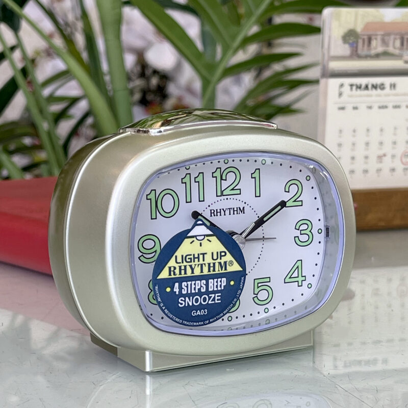 Đồng hồ báo thức để bàn, du lịch Rhythm Nhật Bản CRE219NR18, dùng 1 pin AA. Vỏ nhựa cao cấp màu nhủ vàng, nắp đen. Kích thước 9.4 x 7.6 x 6.0cm, trọng lượng 115g. Máy Rhythm chạy cực êm, chính xác, bền bỉ. Báo thức bằng tiếng bíp (Beep) , reo nhắc lại thích hợp cho người ngủ nướng. có đèn led hỗ trợ xem giờ trong tối.