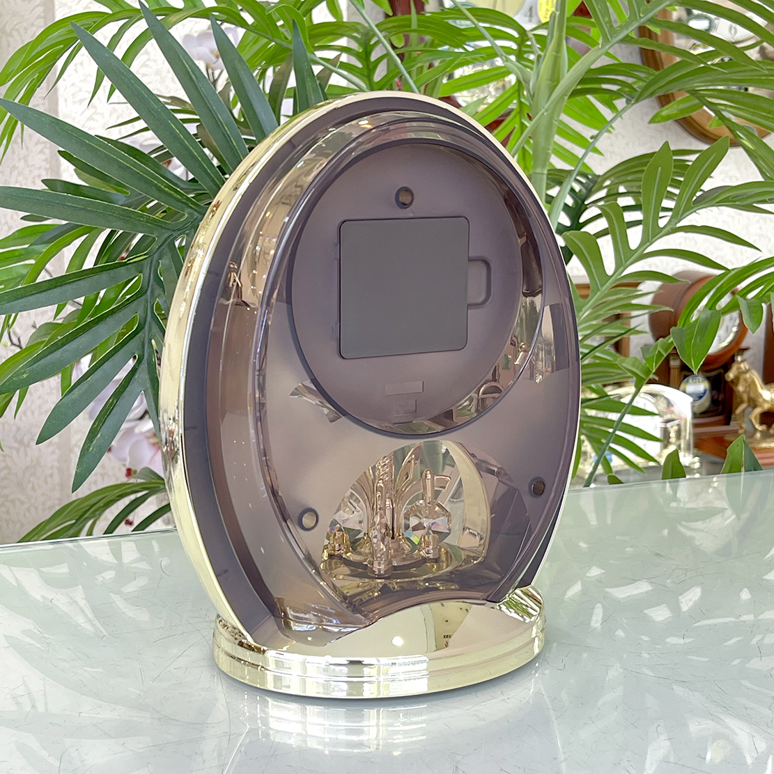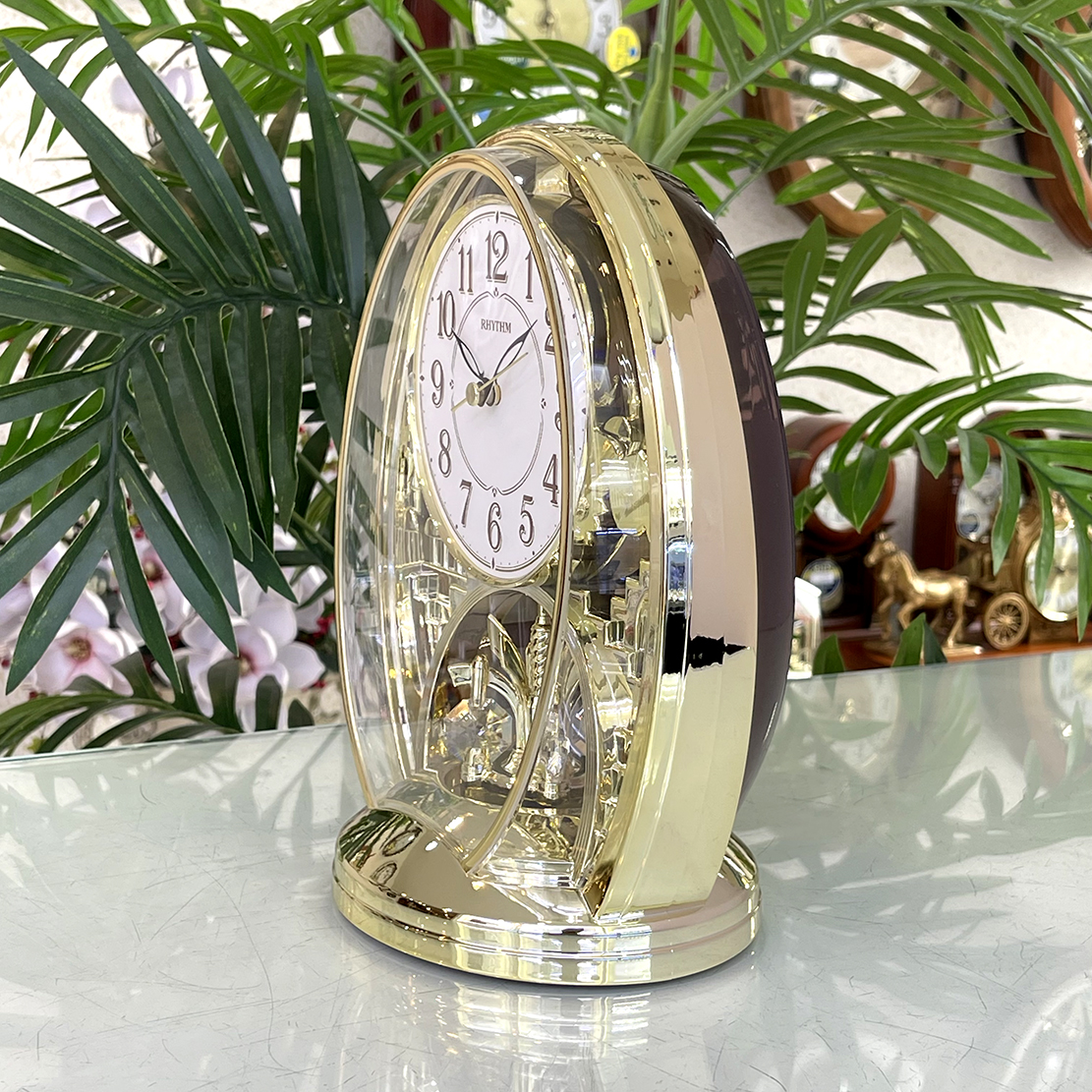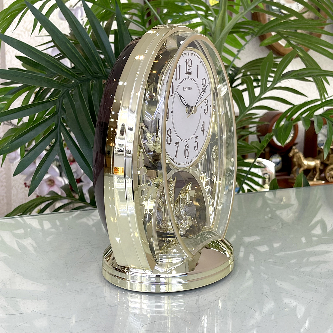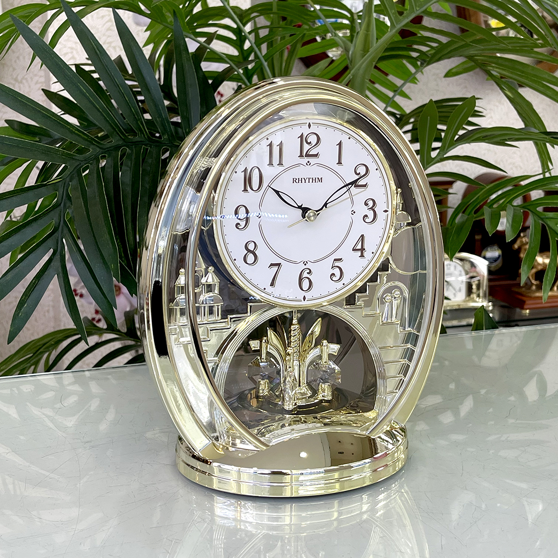 Đồng hồ để bàn lắc xoay Nhật Bản Rhythm 4SG768WT18, dùng 2 pin (AAx2), vỏ nhựa cao cấp mạ vàng sáng bóng cực bền màu kết hợp Mica trong suốt. Kích thước 20.8 x 25.5 x 13.7cm, trọng lượng 725g. Máy Rhythm Nhật chính xác, êm, bền bỉ.