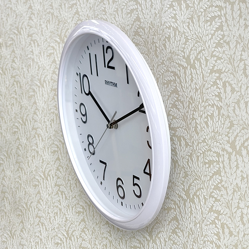 Đồng hồ treo tường Rhythm CMG579NR02. Kích thước 30.0 x 4.0cm, trọng 0.63kg. Vỏ nhựa cao cấp màu trắng bóng. Dùng Pin. Máy Rhythm 3 kim trôi chạy cực êm, chính xác, bền bỉ.