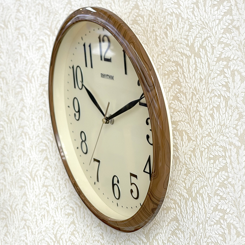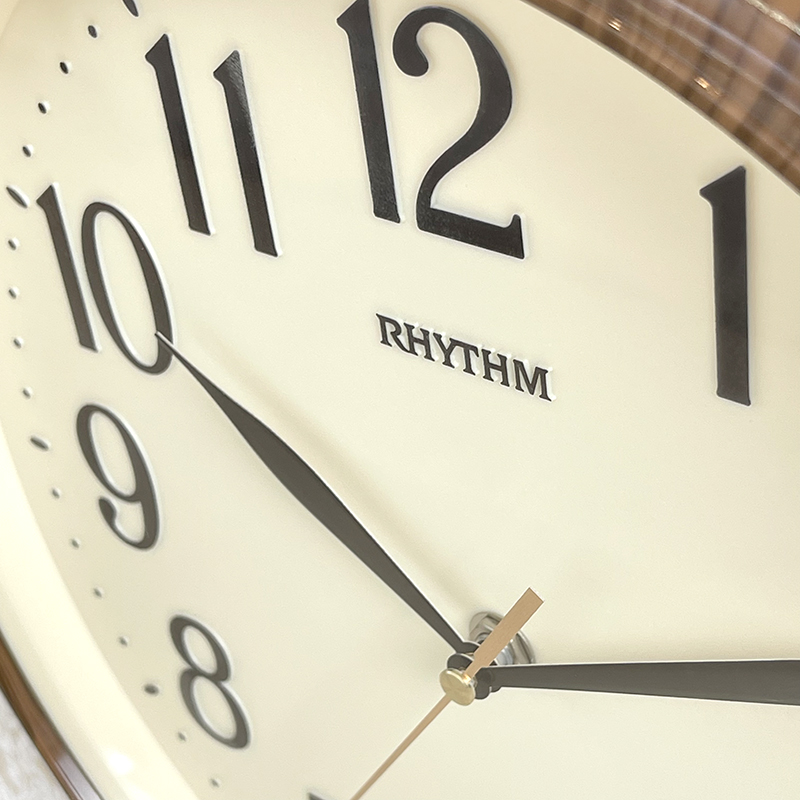 Đồng hồ treo tường Rhythm CMG613NR06. Kích thước 30.0 x 4.5cm, trọng 0.63kg. Vỏ nhựa cao cấp màu nâu bóng. Dùng Pin. Máy Rhythm 3 kim trôi chạy cực êm, chính xác, bền bỉ.