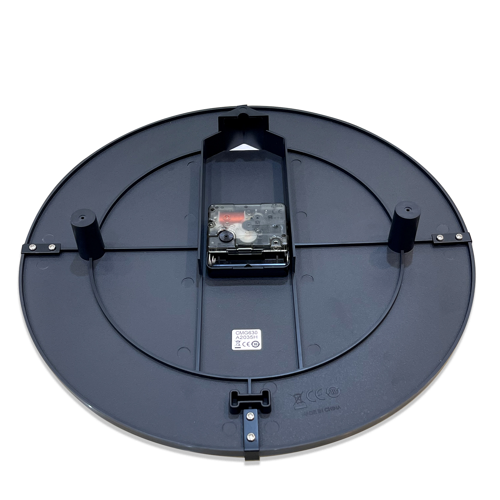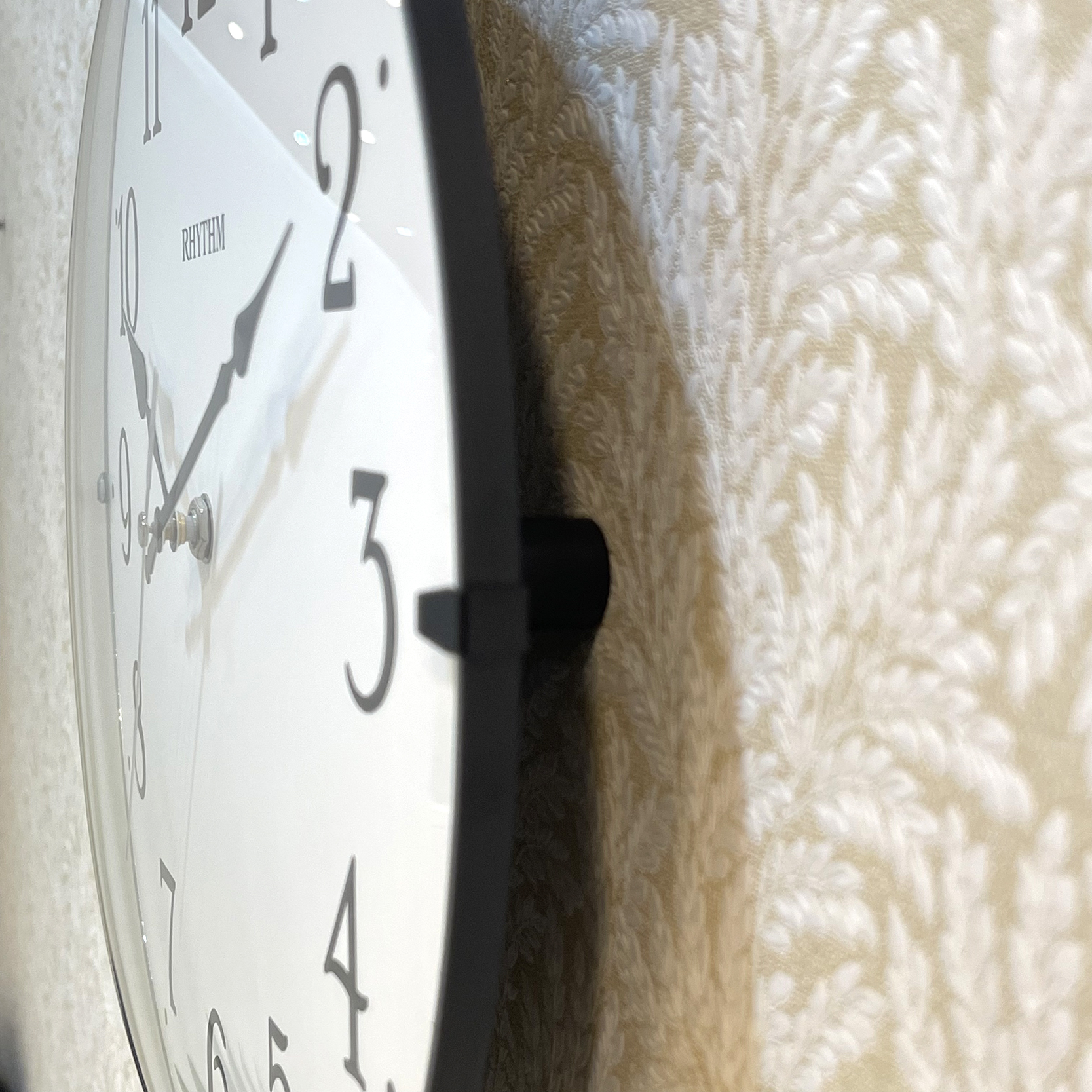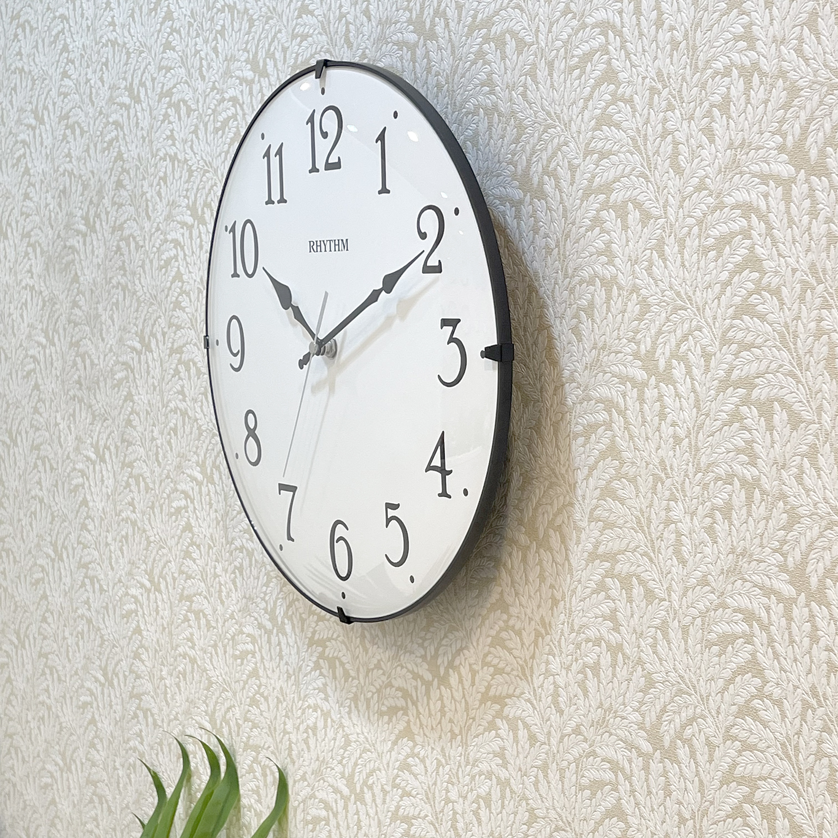 Đồng hồ treo tường Rhythm CMG630NR02 – Kt 30.7 x 5.4cm, trọng lượng 622kg,. Vỏ nhựa màu đen. Dùng 1 Pin tiểu (AAx1). , Máy kim trôi chạy cực êm không phát tiếng kêu gây khó chịu, chính xác, bền bỉ.