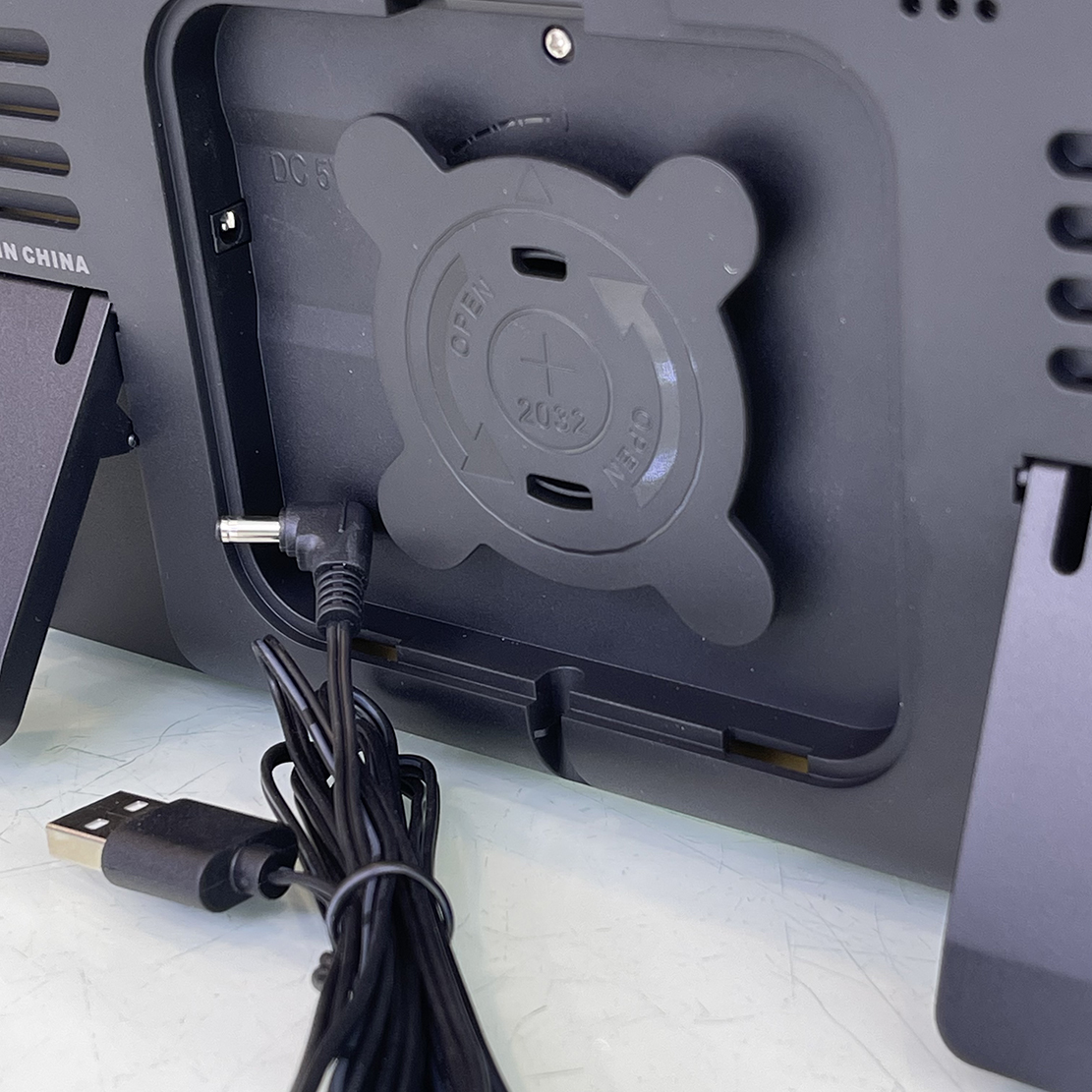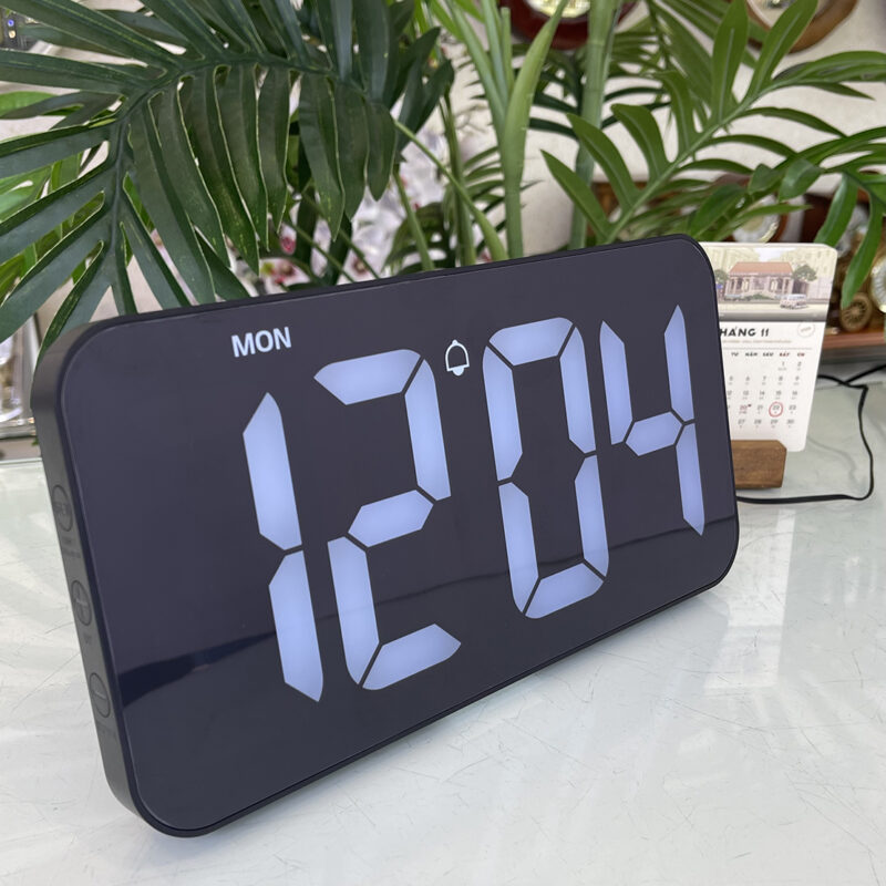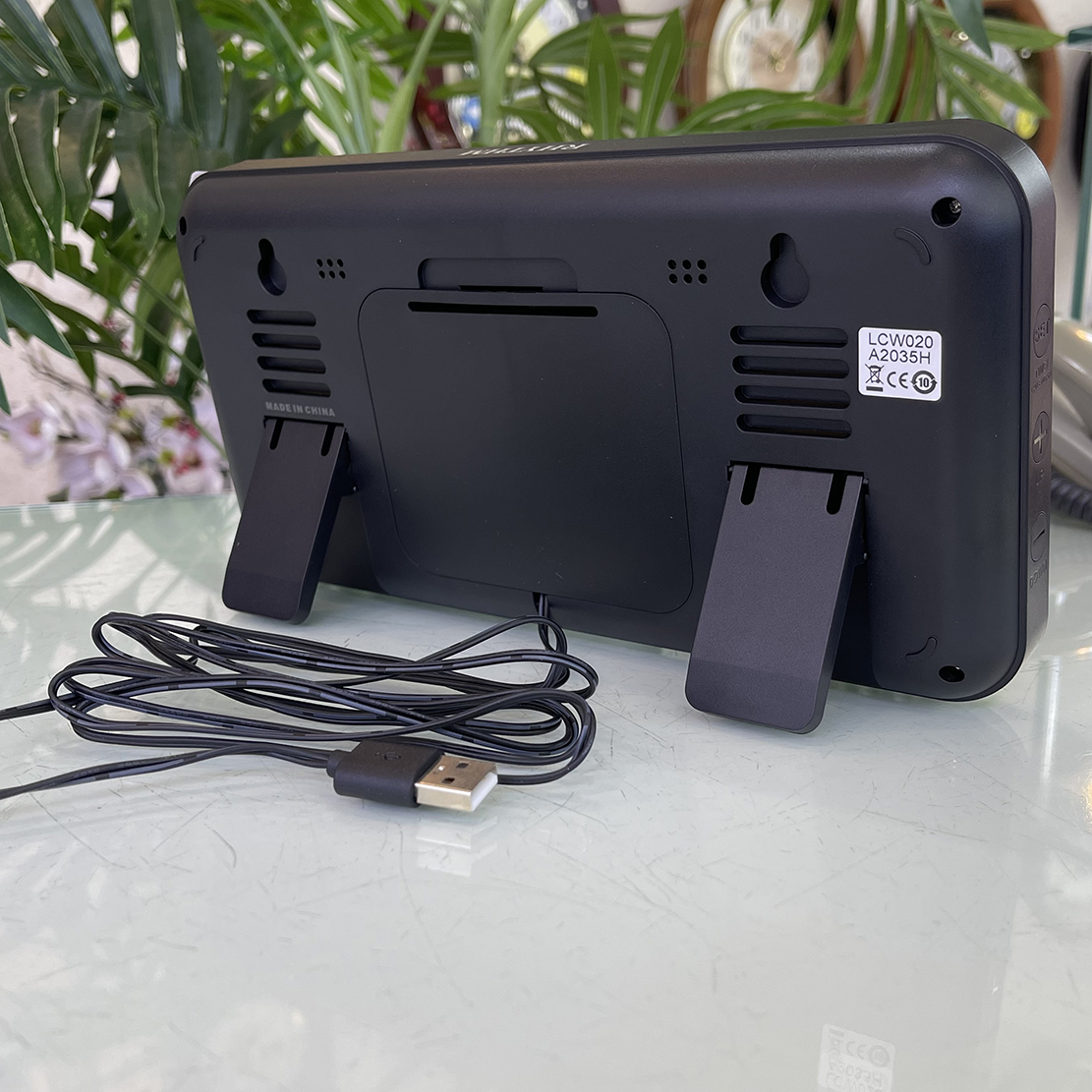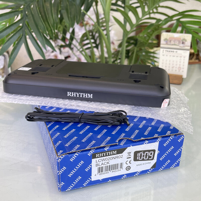 Đồng hồ VỪA TREO TƯỜNG / VỪA ĐẶT BÀN mặt điện tử Rhythm LCW020NR02. Dùng điện qua cổng USB ( Có 1 pin nút áo CR2032 nuôi bộ nhớ ) . Kích thước 26.0 x 13.5 x 2.7cm, 586g. Vỏ nhựa cao cấp. Màn hình rất to hiển thị lịch ngày, tháng, thứ, nhiệt độ. 2 báo thức ( Dual Alarm ) bằng tiếng bíp bíp với âm lượng tăng dần 4 cấp độ. hiển thị giờ 12/24.